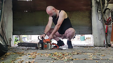 "Perverted Daddy pissing naked in garage"