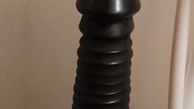 "Sissy in pink impales her tight ass on gigantic black dildo"