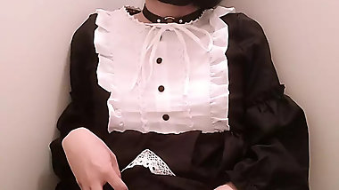 "Horny Japanese femboy masturbates with a vibrator in a maid's outfit"