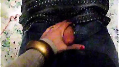 "Shemale Girl gently Strokes Oiled up 10-inch Cock with her Nylon Feet Footjob"