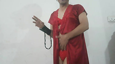 "AMATEUR SEXY GUY WEARS STEPMOM'S THONG - JERKS OFF AND CUMS WITH CRAZY COCK"