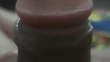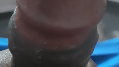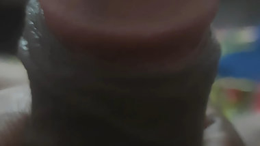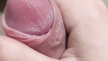 "big horny cock closeup in foam while stepmom masturbates in the kitchen"