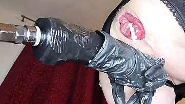"long hard big handjob in black lubricated gloves and a huge explosion of hot cum massive best"