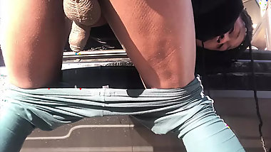"Limp little penis crossdresser pissing outdoor"