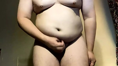 "Fat sissy plays with big belly"
