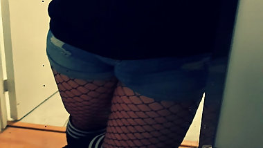 "Sissy sitting in short and tight jeans"