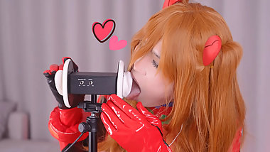 "ASMR Evangelion Asuka, Ear licking, Mouth sounds, Tapping, No Talking, Visual ASMR"