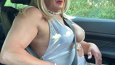 "Sexy Crossdresser kellycd2022 enjoying an afternoon drive a little pit stop break"