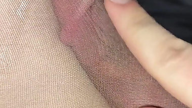 "Teasing My Big Cock in Someone's Grey Shiny Pantyhose"