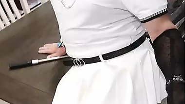"French sissy in blue corset for a little orgasm"