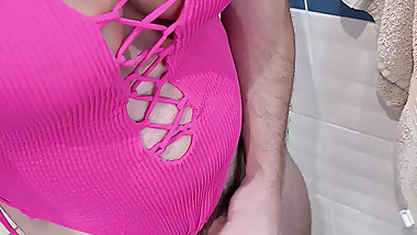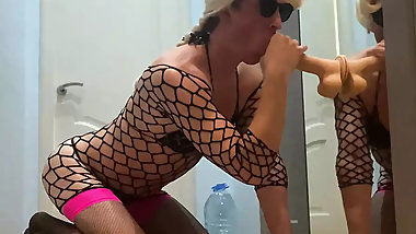 "Ladysilva crossdresser taking off her panties in the bathroom come now to fuck my hot ass"