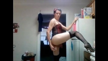 "Gay crossdresser sissygasm with anal dildo fuck"