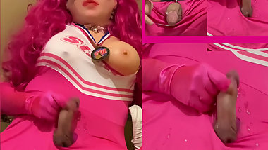 "Cute crossdressing sissy femboy masturbating while drooling and cuming"