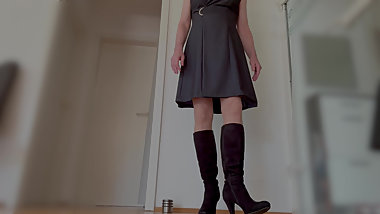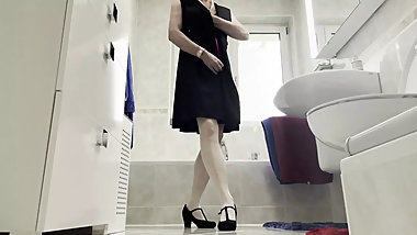 "Sissy Crossdresser, Wearing sexy dress & Black stockings masturbating"