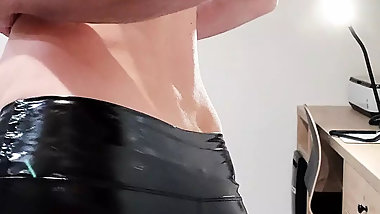 "BBW CD Blasts huge cumshot at mirror in Black Lace Lingerie"