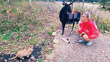 "Tall milker with huge tits could not resist Femboy's cock."