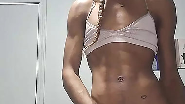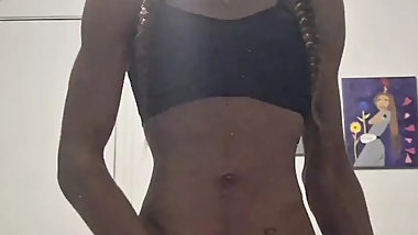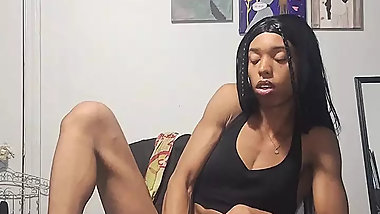 "Femboy Sissy in lingerie riding black dildo"