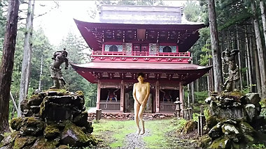 "Cute Japanese femboy jerks his little cock and cums outdoors"