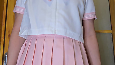 "Sissy Kanisa's Fitting Room: Try on Pink Seifuku (japanese Sailor College Uniform)"
