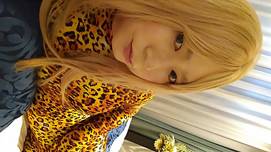 "A Japan cross-dressing boy took off his dress, changed into leopard print full-body tights, and masturbated."