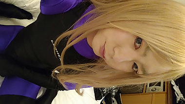 "A cross-dressing boy changed from a black swimsuit to purple full-body tights and masturbated comfortably!"