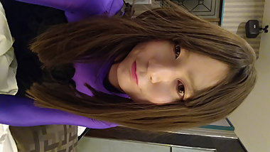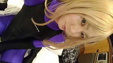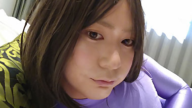 "Japan cross-dressing men masturbate in lavender-colored full-body tights"