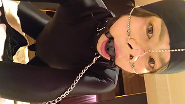 "A cross-dressing boy masturbated wearing full-body tights with a nose hook and a ball gag."