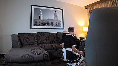 "Sissy Maid Worships Mistress Feet and Sucks Strapon"