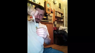 "Gay slutty guy is always hungry for cock, sucks and kisses"