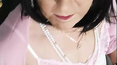 "Sasha Earth, tranny sissy whore fucking ass with anal sex toy at home in the bathroom"