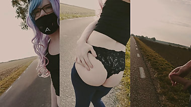 "Going for a Walk by the Road and Squirting a Huge Cumshot"