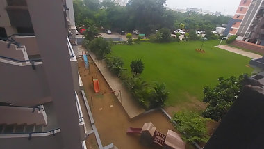 "At the window mastubating"