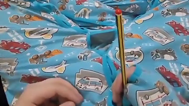 "Peeing on myself in bed then cumming"