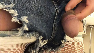 "Tiny dick sissy handfree orgasm and pee"