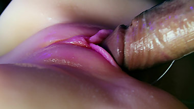 "Juicy pussy close-up absorbs a portion of sperm from a big cock and slurps!"