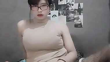 "Sexy Gay femboy wearing white lingerie with hijab handjob"