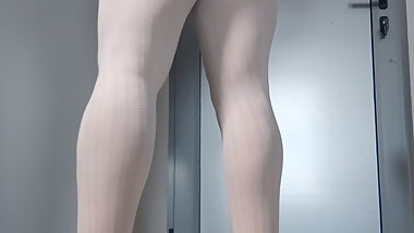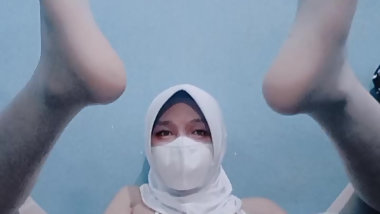 "Sexy Gay femboy wearing white lingerie with hijab handjob"