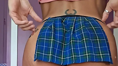 "Submissive trans schoolgirl, huge big cock and venoza, I masturbate under my skirt, dirty bitch, submissive, school"