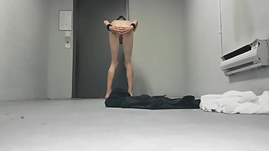 "Crossdress in High heels and black short skirt - Big ass and bulge"