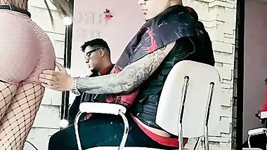 "Hot Tranny Shows off her Booty in lingerie"