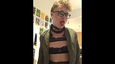 "Sexy Femboy playing with dick and Microphone"