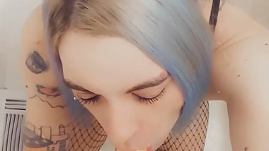 "Cute Rocker in Lingerie Loves Sucking Cock"