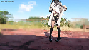 "My subscriber's mission! Asian slut with a big tits changes into a miniskirt in a garden where people are passing nearby."