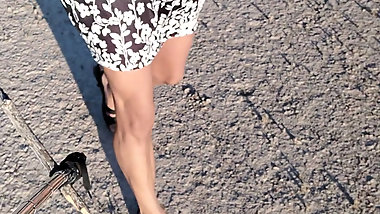 "Beautiful little femboy strips naked in public with dress and pink heels very hot enjoy her"