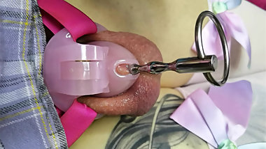 "Caged sissy destroys her boypussy 5 with huge dildos"