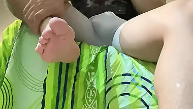 "Climaxing in My Lingerie with socks and then cum on my FEET"