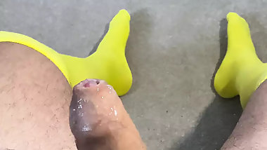 "Stroking and playing with my cock up close "