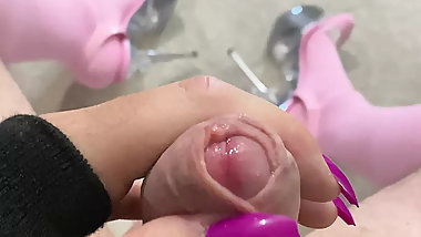 "Rubbing my cock in platform heels, join me?"