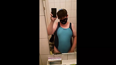 "Chubby Femboy being horny in new one-piece Swimsuit"