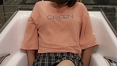 "Shemale Ting xuan takes a bath in the bathtub wearing clothes"